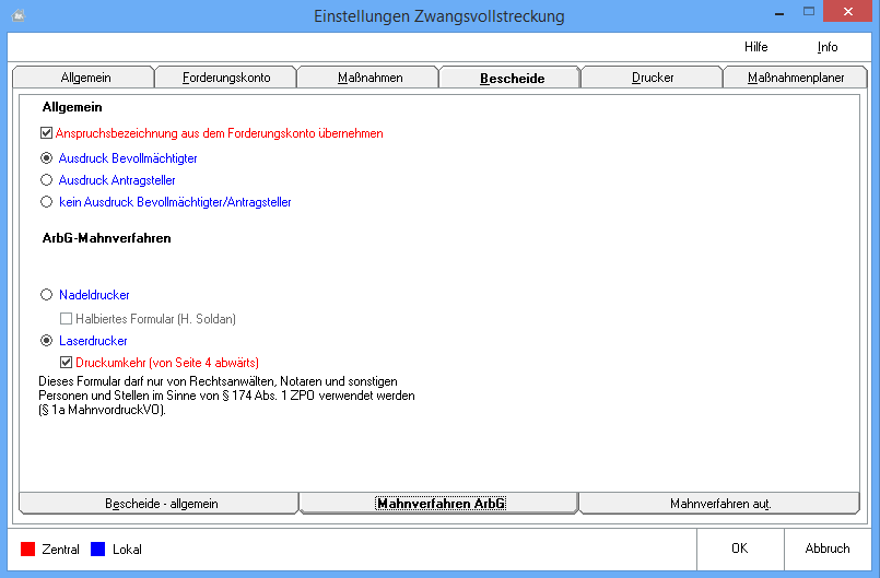 Sind alle Daten erfasst, kann der Antrag über die Funktion E-Mahnverfahren als Barcodeausdruck an das Gericht übermittelt werden.